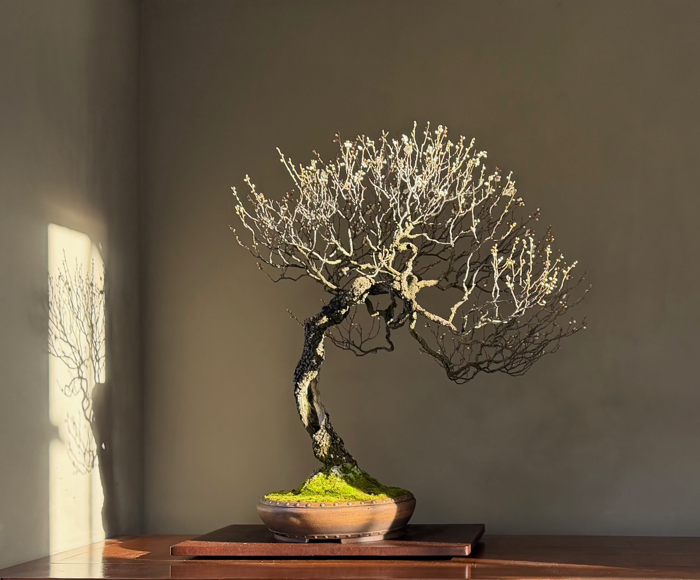El Tokonoma de febrero no puede estar dedicado a otro árbol. El ume que vino del jardín de Sinji Suzuki; uno de los árboles más especiales de la colección y uno de los preferidos de Luis.