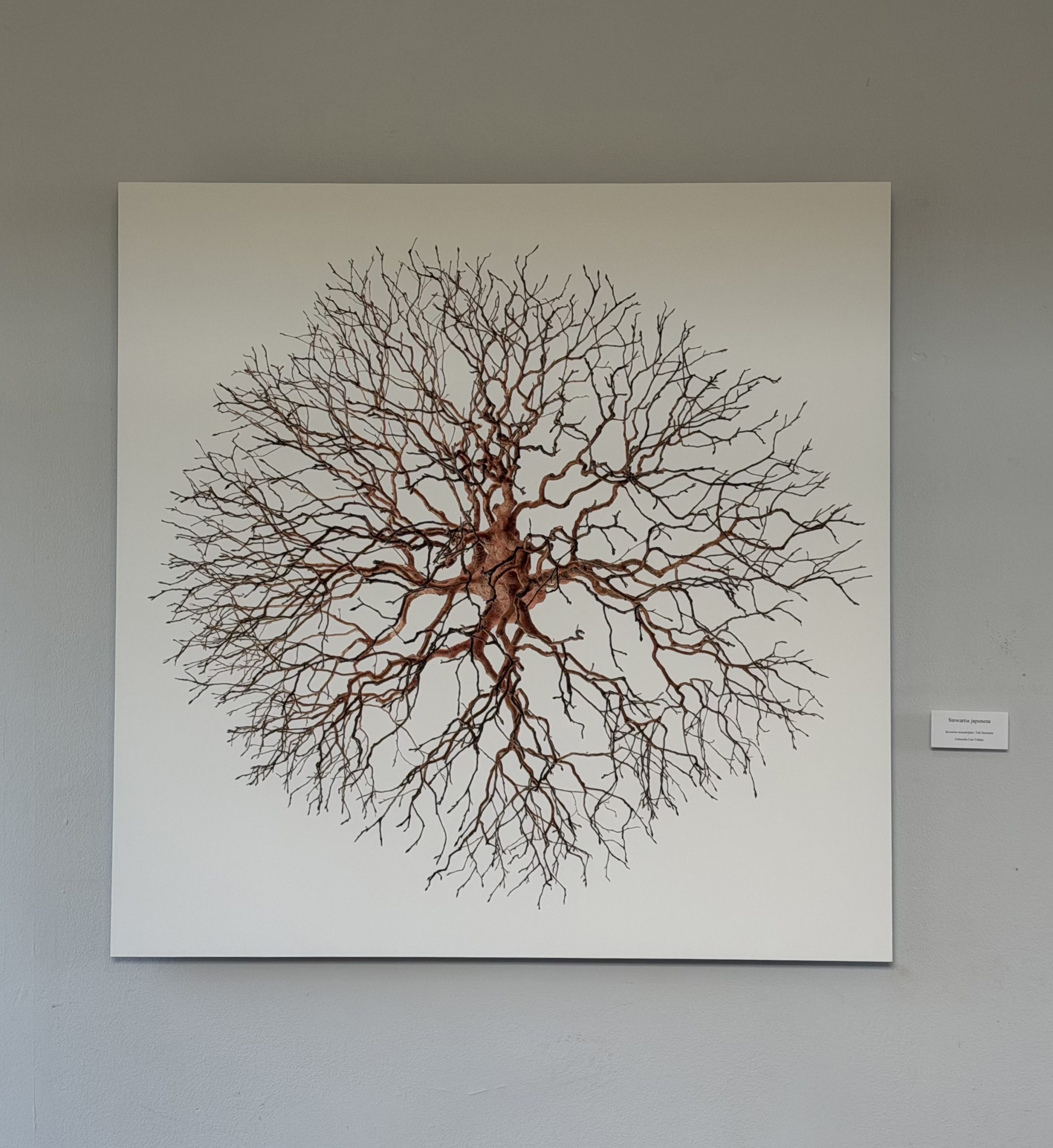 To complete the homage to the Stewartia, (because that is what we do when we distinguish a tree and place it in the tokonoma) we have on display a photograph that Andrea Savini took of it from above. So the whole of the entrance space is dedicated to it.